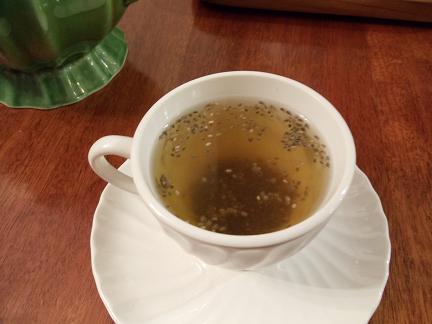 When eaten dry, chia seeds are crunchy, but when added to a liquid, a gel-like coating forms around the seeds. Be careful not to disturb the layer of seeds as it floats on the tea, or else the individual seeds will not stick together as a scum.