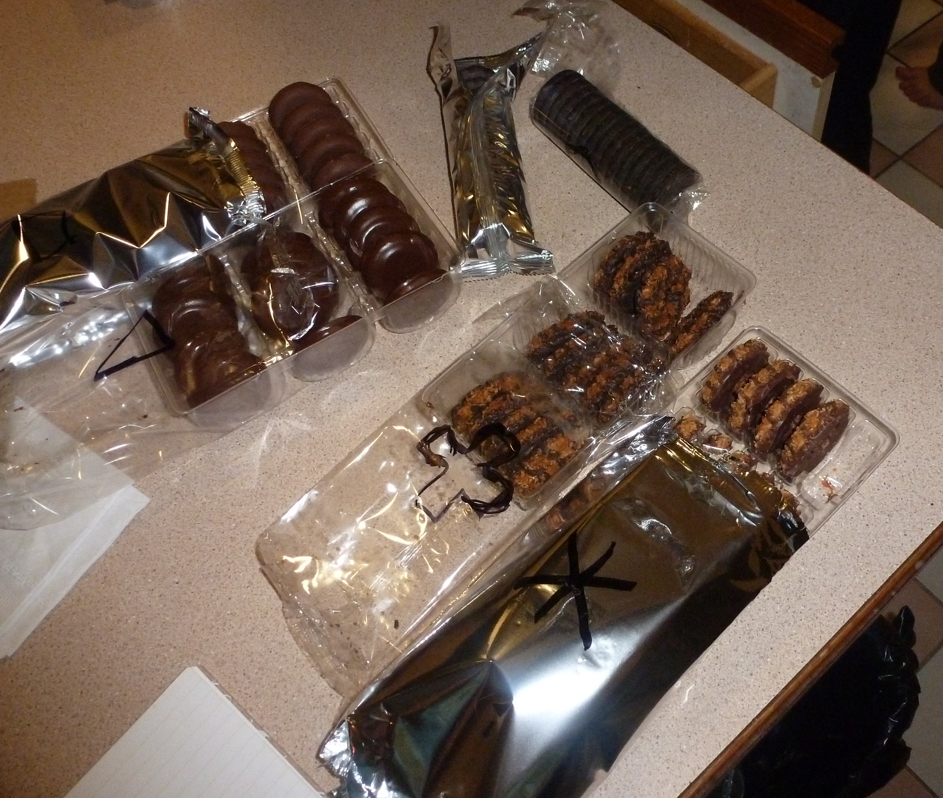 Beth merrily drove off to New Hampshire, only to return disappointed after the cashiers at the grocery store she visited told her the Cookie Locator website had told her the wrong date for the sale at that store. Cookie month was almost over, and the chance at chocolate-coated cookie happiness was fading away. Then a coworker from New Hampshire saved the day, and Cookie Science could begin.